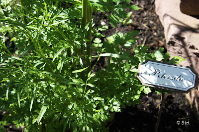 In unserer riesigen Kräuterspirale (- unser Sohn hat sie fachkundig letztes Jahr mit meinem Mann angelegt -) gedeiht alles prächtig. Manche Kräuter sind in diesem Jahr wieder neu gewachsen, andere waren nur einjährig. Interessant ist z.B. auch das Süßkraut, das ich noch nicht allzu lange kenne. (Die Pflanze stammt ursprünglich aus Südamerika. Seit Jahrhunderten wird sie dort von der Bevölkerung als Süßstoff und Medizin verwendet.) Jedenfalls können wir jetzt jede Menge "Kräutersalate" essen.